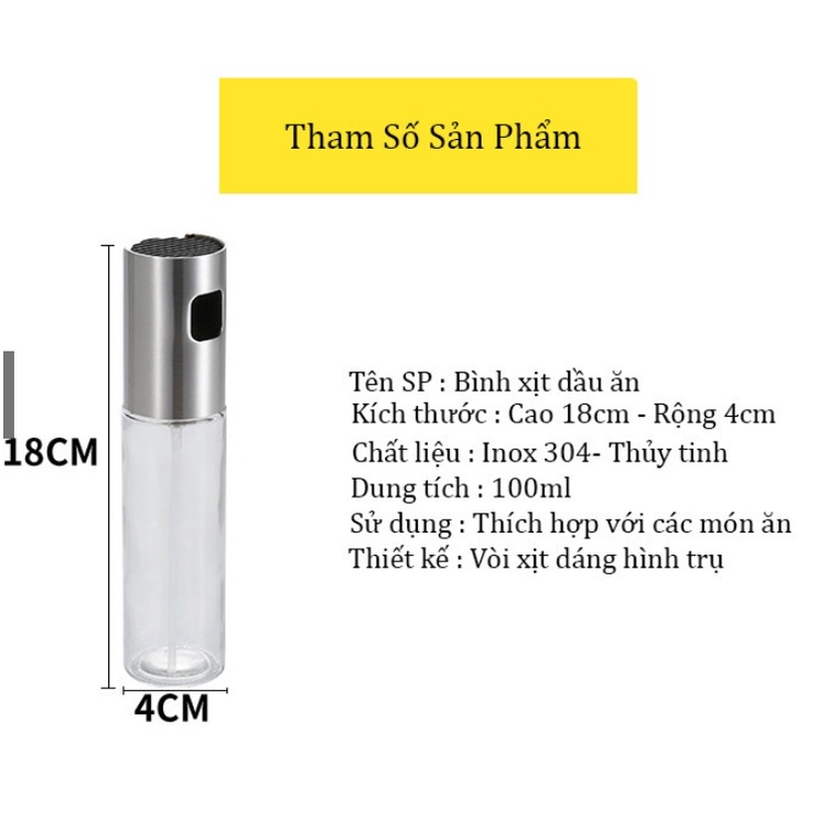 Nhà cửa & Đời sống > Chất khử mùi, làm thơm nhà > Khác || Bình xịt dầu ăn, phun xương 100ml cao cấp nắp inox thân thuỷ tinhCòn hàng