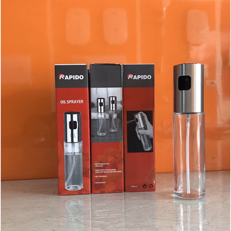 Bình xịt dầu ăn thủy tinh 100ml Rapido, nắp bằng inox bền, chắc, rất đẹp, hàng chính hãng