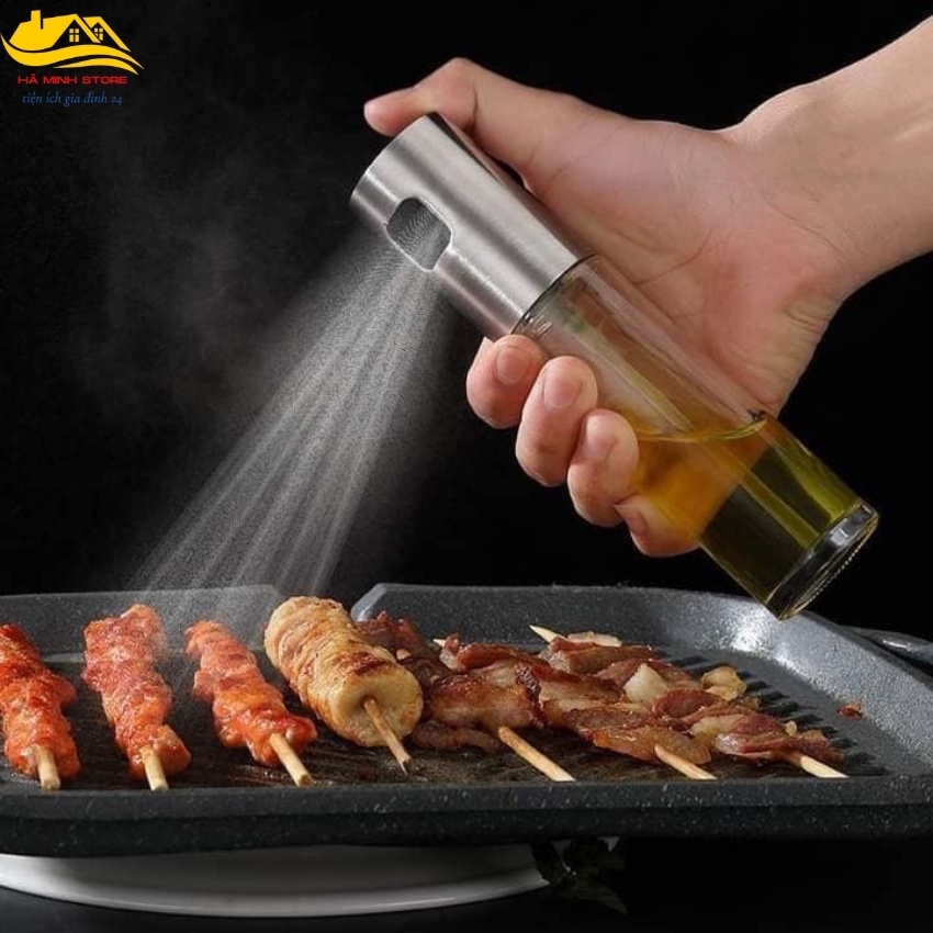 Bình xịt dầu ăn thủy tinh dung tích 100ml, xịt dầu ăn phun sương, chai xịt dầu ăn cho nồi chiên không dầu Hà Minh Store