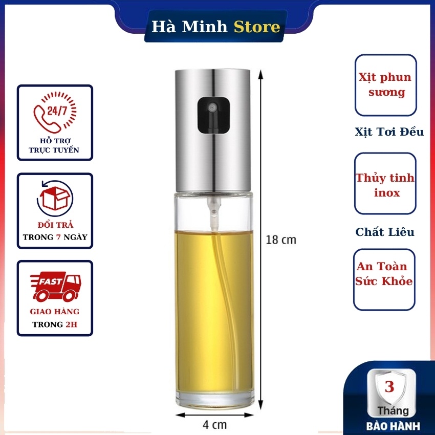 Bình xịt dầu ăn thủy tinh dung tích 100ml, xịt dầu ăn phun sương, chai xịt dầu ăn cho nồi chiên không dầu Hà Minh StoreMÔ TẢ SẢM PHẨM:
