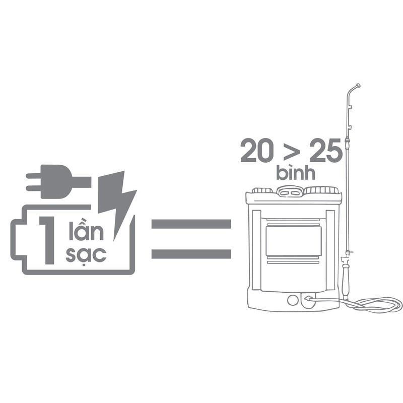 Bình có năng suất sử dụng cao: sử dụng hiệu quả cho việc phun xịt từ 20 -> 25 bình cho một lần sạc giúp làm giảm sức lao động và tăng hiệu quả làm việc