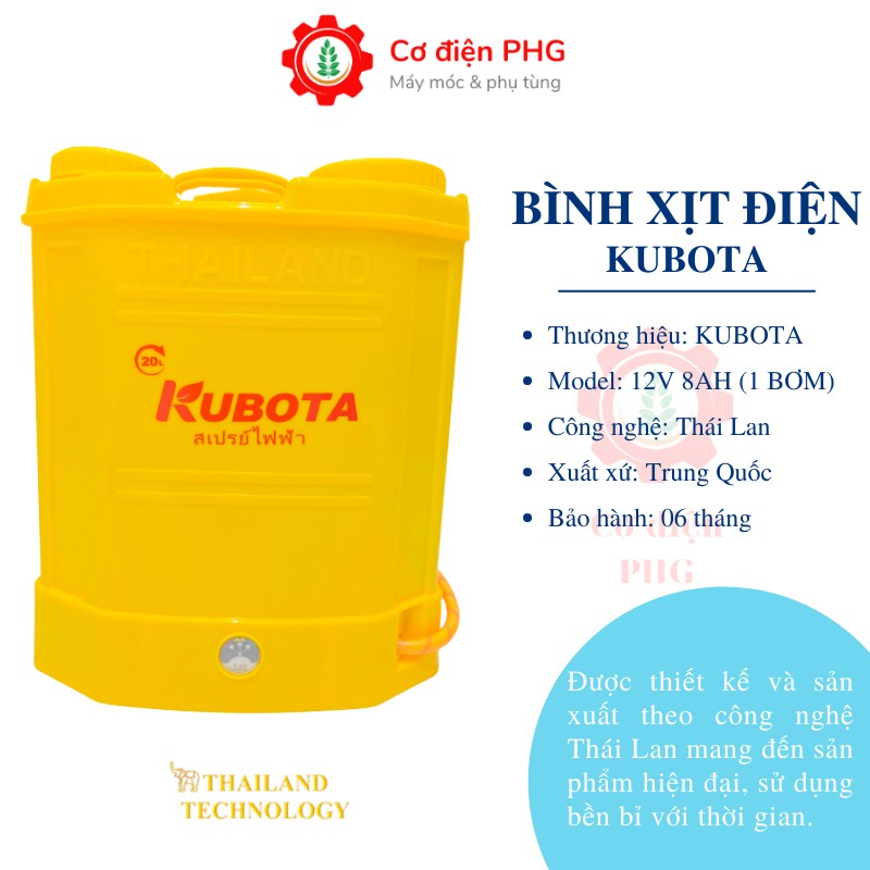 Giới thiệu Bình xịt điện khử khẩn KUBOTA 20L 12V 8AH | 1 bơm | Công nghệ Thái Lan | Bình xịt khử khuẩn | Bình phun thuốc