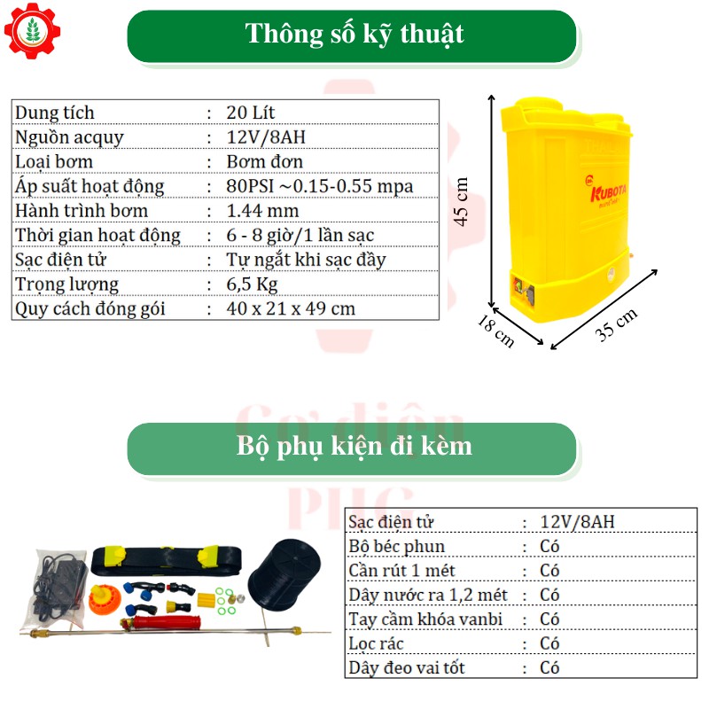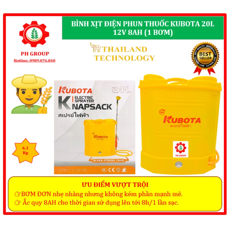 Bình xịt thuốc, bình phun khử khẩn KUBOTA 20L 12V 8AH | 1 bơm | Công nghệ Thái Lan❗❗❗Hãy làm phong phú thêm danh mục các dụng cụ thiết bị làm vườn của bạn!