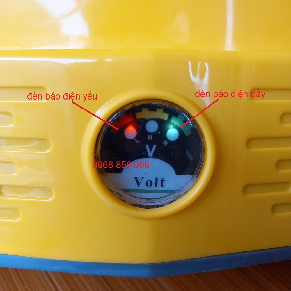 - Ắc quy 12v - 8AH cho thời gian sử dụng được lâu. Thời gian sặc đầy từ 8h - 10h.