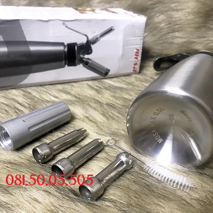 1. Bình Xịt Kem Tươi Inox Mosa 0.5LMosa là thương hiệu nổi tiếng của Đài Loan về việc cung cấp các sản phẩm Gas và Bình làm kem tươi.