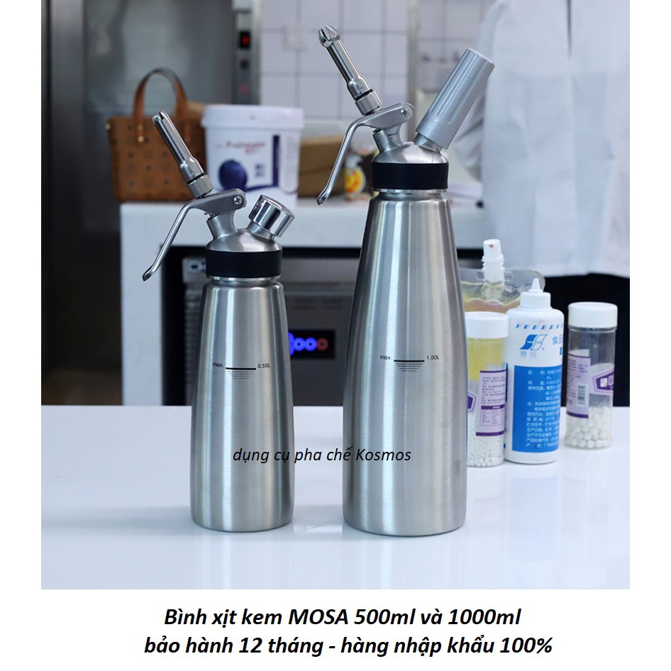 Nhà cửa & Đời sống > Dụng cụ nhà bếp > Dụng cụ nướng & trang trí bánh || Bình xịt kem tươi Mosa vòi inox 500ml - 1000ml (tặng ngay công thức đá xay khi mua hàng)Còn hàng