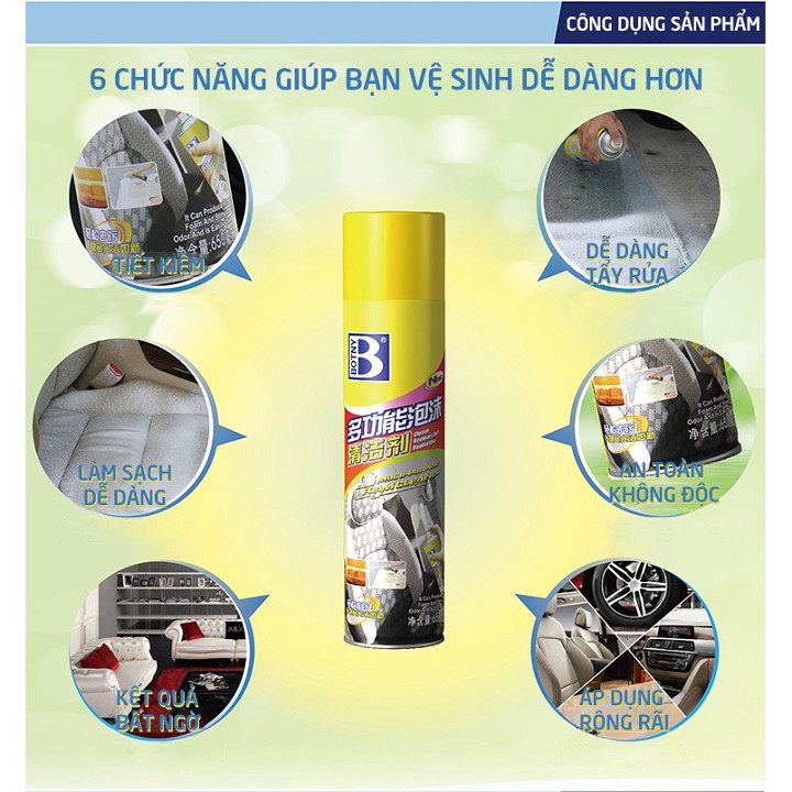 BÌNH XỊT LAU CHÙI GHẾ SOFA, GHẾ DA, GHẾ Ô TÔ ĐA NĂNG BOTNY 650ML - DUNG DỊCH VỆ SINH GHẾ DA