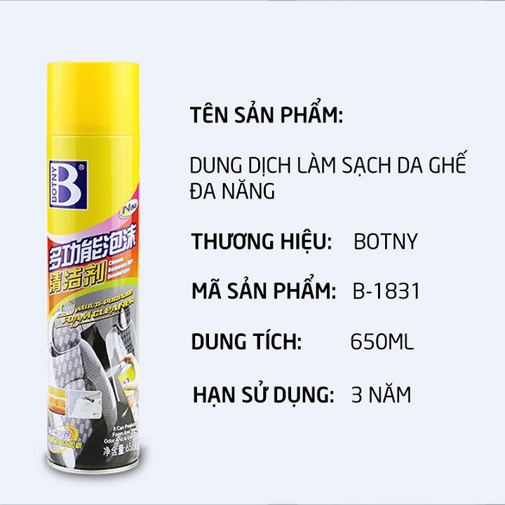 BÌNH XỊT LAU CHÙI GHẾ SOFA, GHẾ DA, GHẾ Ô TÔ ĐA NĂNG BOTNY 650ML - DUNG DỊCH VỆ SINH GHẾ DA#XỊTVỆSINHGHẾDA #BÌNHLAUCHÙIGHẾDA #VỆSINHGHẾXEHƠI #VỆSINHĐỒDA