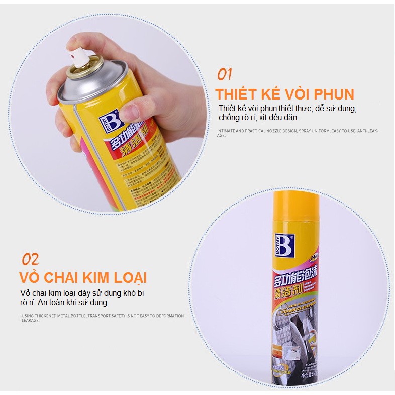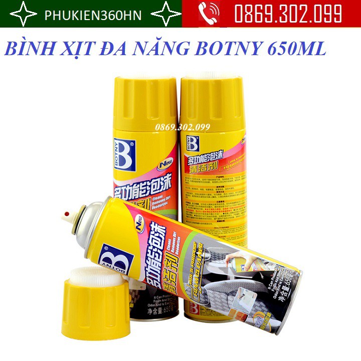 Giới thiệu BÌNH XỊT LAU CHÙI GHẾ SOFA, GHẾ DA, GHẾ Ô TÔ ĐA NĂNG BOTNY 650ML