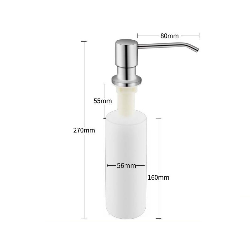 - Với thiết kế nút nhấn bền bỉ, lò xo nhấn bằng thép.Bình chứa nước rửa chén bằng nhựa Platic với dung tích 300ml. Tiết kiệm nước rửa chén.