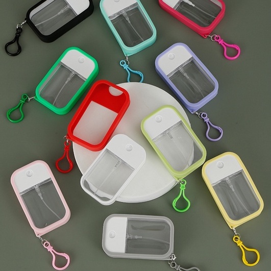Nhà cửa & Đời sống > Đồ dùng phòng tắm > Kệ đựng xà phòng || Bình xịt nước rửa tay chai xịt cồn mini 45ml 50ml viền silicon móc khóa balo túi xách tiện dụng dễ sử dụng KinoShopCòn hàng