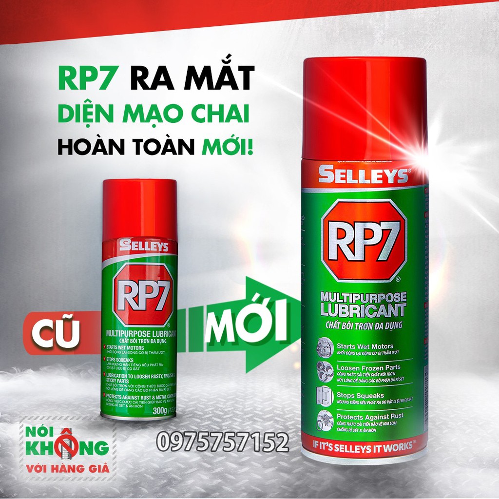 🔥 Dầu chống rỉ sét và bôi trơn đa dụng RP7 chai nhãn mới 350g (300g + thêm 50g)🔥Dầu chống rỉ sét, bôi trơn đa năng Selleys RP7 là một sản phẩm đa năng được sản xuất bởi hãng Selleys với thành phần là một hỗn hợp gồm một loại dầu cao cấp dễ thấm, nhờn với công thức cải tiến và một hỗn hợp đậm đặc chống gỉ sét hiệu quả.