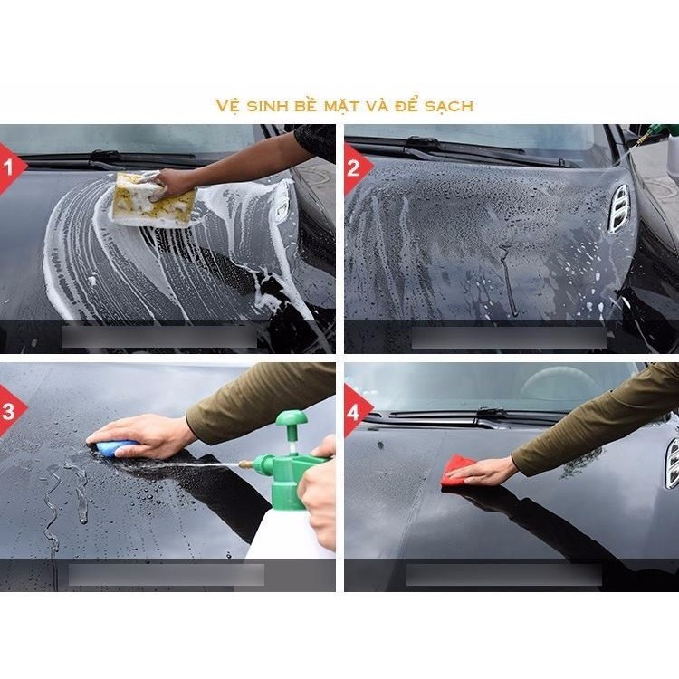 Bước 1: Rửa sạch xe bằng dung dịch làm sạch từ chai nhỏ và làm khô bề mặt xe (phải thật khô vì độ ẩm sẽ ảnh hưởng đến kết quả phủ bóng).
