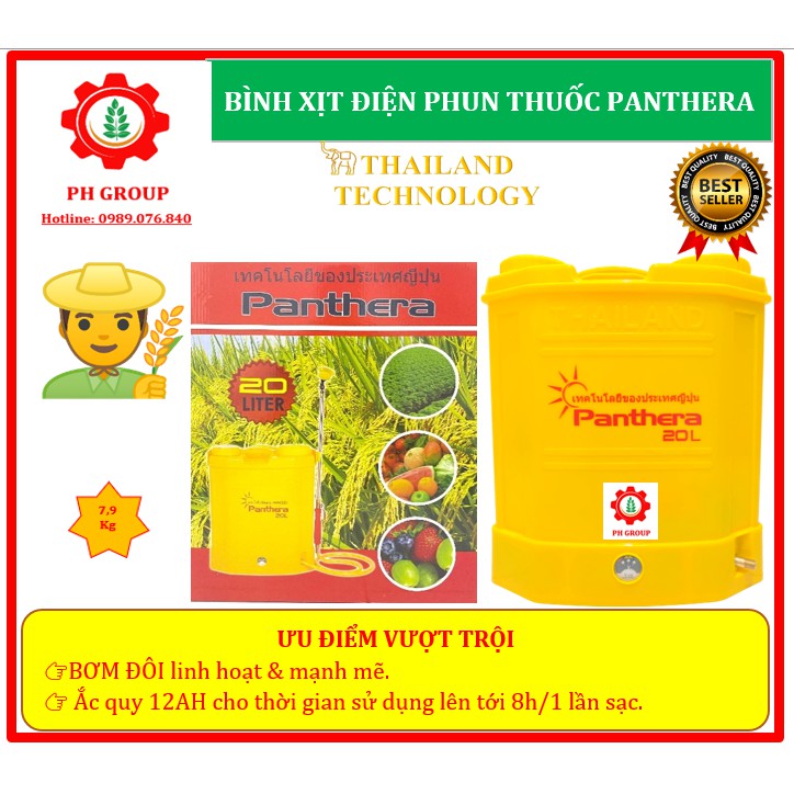 Tên sản phẩm : BÌNH XỊT ĐIỆN PHUN THUỐC PANTHERA 20L 12V/8AH (1 BƠM)
