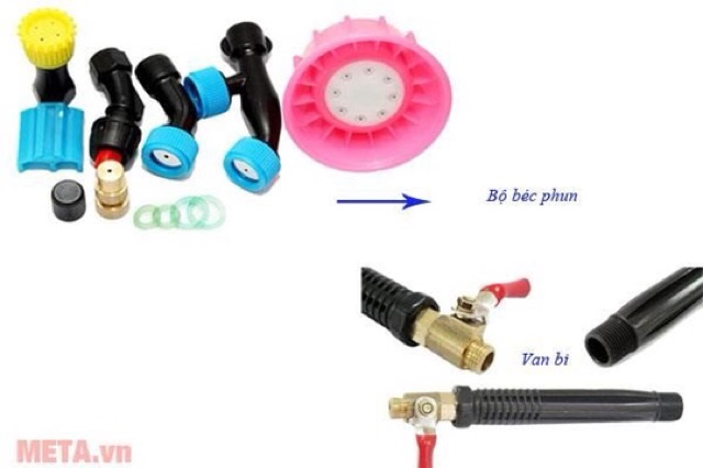 Ngoài ra, Pagoda 18D còn được trang bị đa dạng bộ béc phun gồm: Phun sương, phun tia, béc loa, béc chỉnh... giúp người sử dụng có thể tùy chọn sao cho phù hợp nhất với mục đích phun.