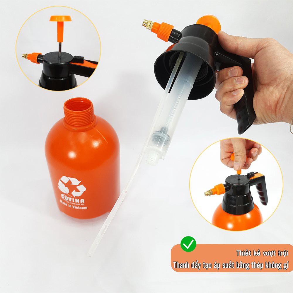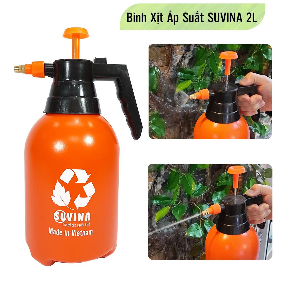 Bình xịt tưới cây SUVINA 2L được sản xuất theo tiêu chuẩn Châu Âu, được trang bị vòi phun bằng đồng mang đến độ bền lâu cho sản phẩm.Bình xịt tưới cây 2L dùng được cho các hóa chất, nông dược thông thường.
