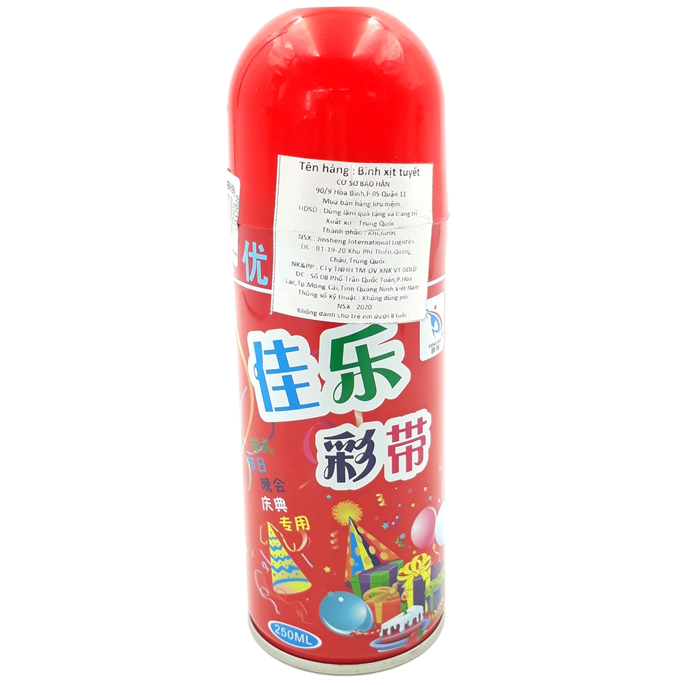 Bình Xịt Tuyết 13871 Bình xịt dây , xịt tuyết thường được dùng trong các ngày lễ, tết như lễ noel, party, sinh nhật, tết, ngày nhà giáo 20/11 tỏ tình hoặc trong các dịp lễ hỏi, lễ cưới. Bọt tuyết khi xịt màu trắng, sau 1 thời gian sẽ tan ra sẽ mang đến cho bạn những giây phút thỏa sức vui đùa bên bạn bè. Sản phẩm có thiết kế đẹp mắt, dễ sử dụng.