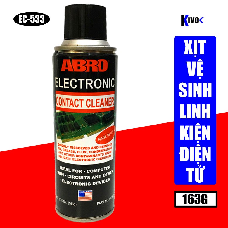 Bình Xịt Vệ Sinh Tiếp Điểm Mạch Điện Tử Abro Electronic EC-533 165g Mỹ - Xịt Chống Gỉ, Bảo Vệ Bo Mạch Linh Kiện Điện Tử