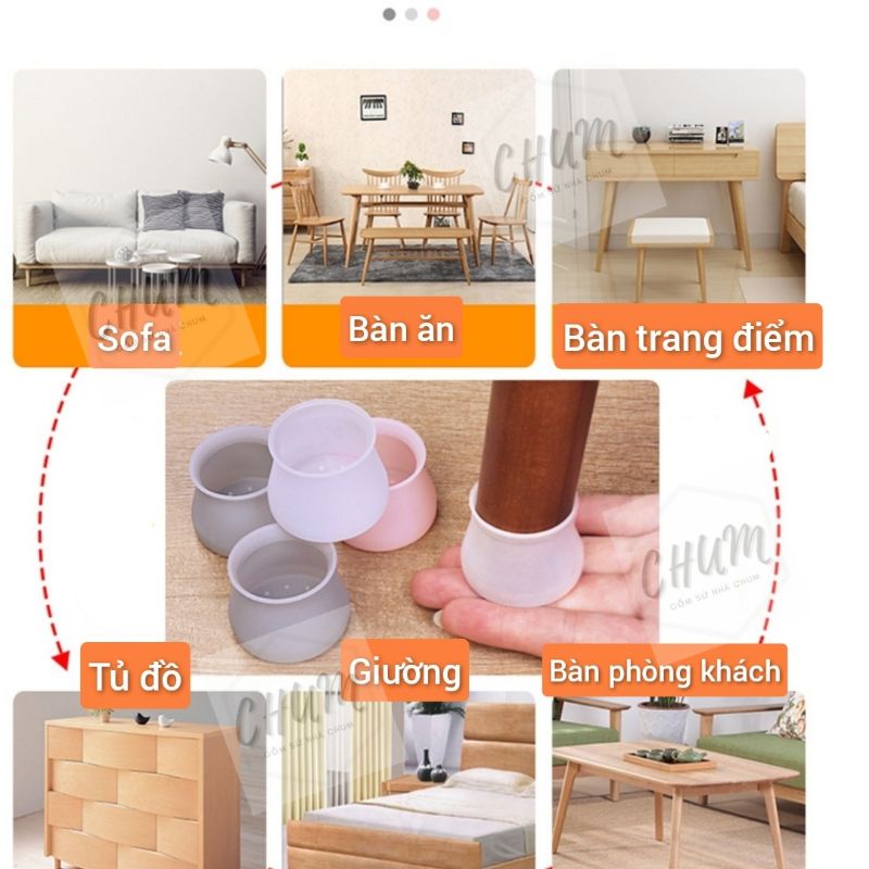bịt chân bàn, ghế silicon giúp giảm ồn, bảo vệ bàn, ghế