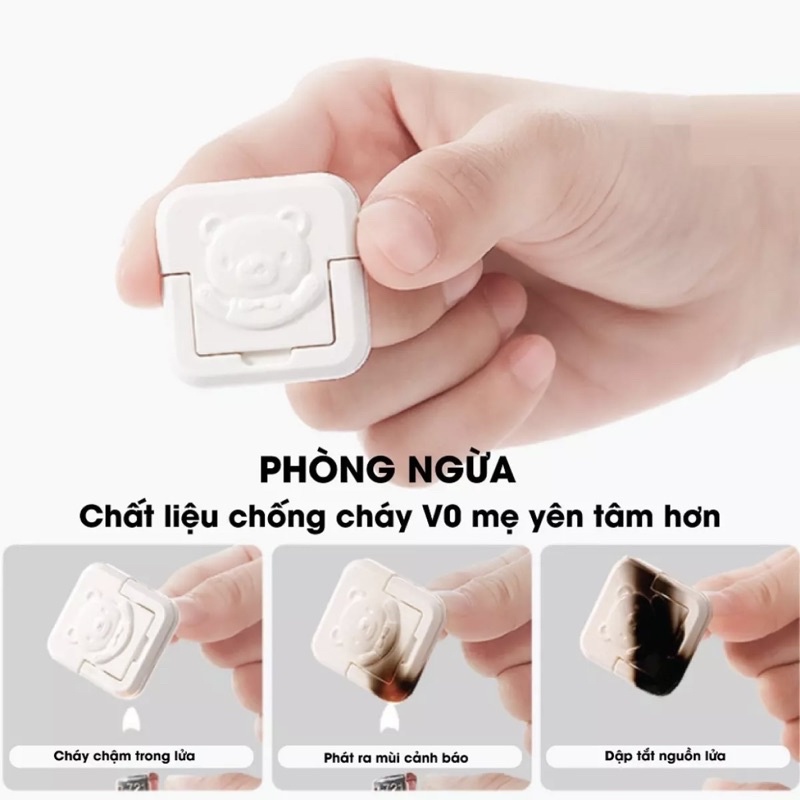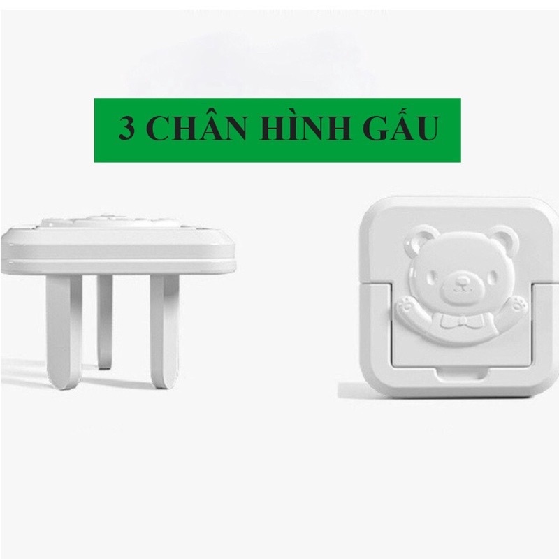 Bịt ổ điện chống giật gấu trắng cao cấp, an toàn phòng chống điện giật cho trẻ nhỏ, có quai chắc chắn