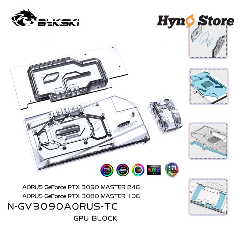 Block tản nhiệt nước VGA Bykski 2 mặt VRAM Gigabyte N-GV3090AORUS-TC Tản nhiệt nước custom - Hyno Store