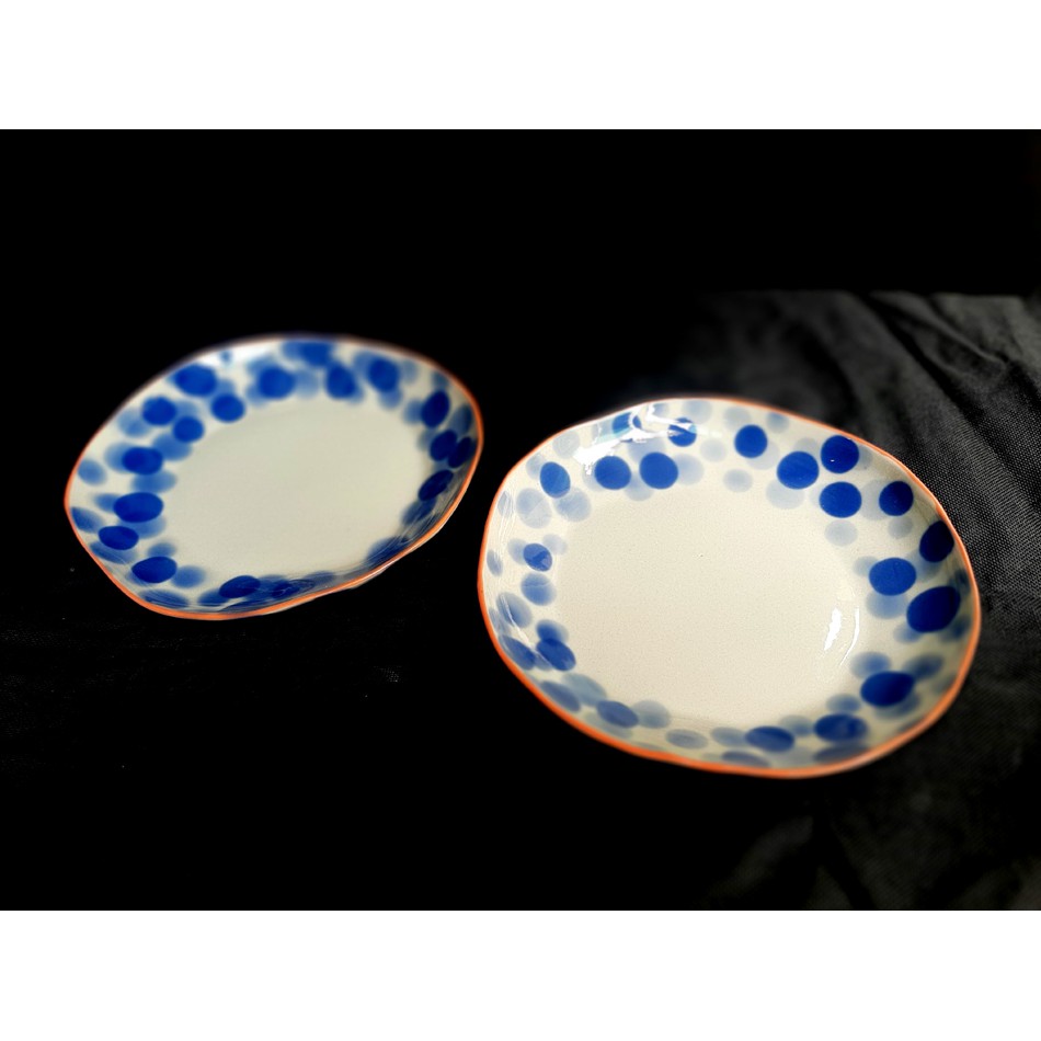 Nhà cửa & Đời sống > Bộ đồ bàn ăn > Dĩa || BLUE DOTS PLATES/ ĐĨA MÉO XUÂT ÂU HỌA CHẤM BI XANH CÔ BAN, SẢN XUẤT TẠI XƯỞNG GỐM SỨ AUTHENTIC BAT TRANGCòn hàng