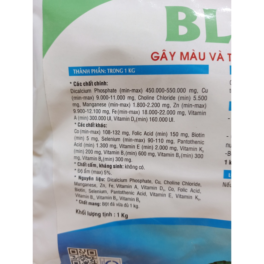 Dicalcium Phosphate, Cu, Choline Chloride, Manganese, Zn, Fe, Vitamin A, Vitamin D3, Co, Folic Acid, Biotin, Selenium, Pantothenic Acid, Vitamin E, Vitamin K3, Vitamin B1, Vitamin B2, Vitamin B6