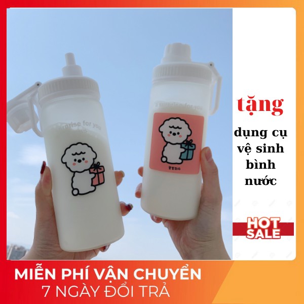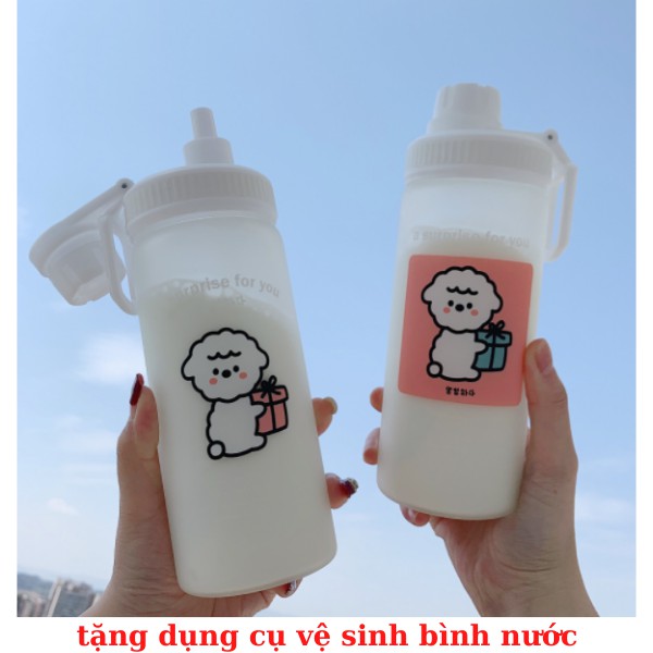 Bnh đựng nước cute bình nước 500ml CÓ ỐNG HÚT LOẠI TỐT - THỦY TINH