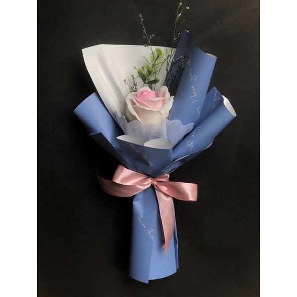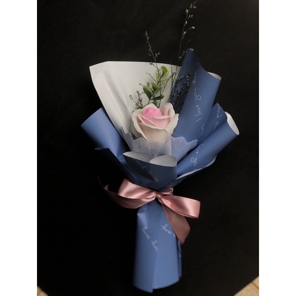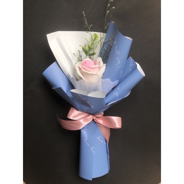Hoa hồng sáp phối cỏ điểm, Sao tím khô, giấy lụa trắng .Bó 1 bông phù hợp làm quà tặng 20-11, 20-10, 8-3, Lễ Valentie..