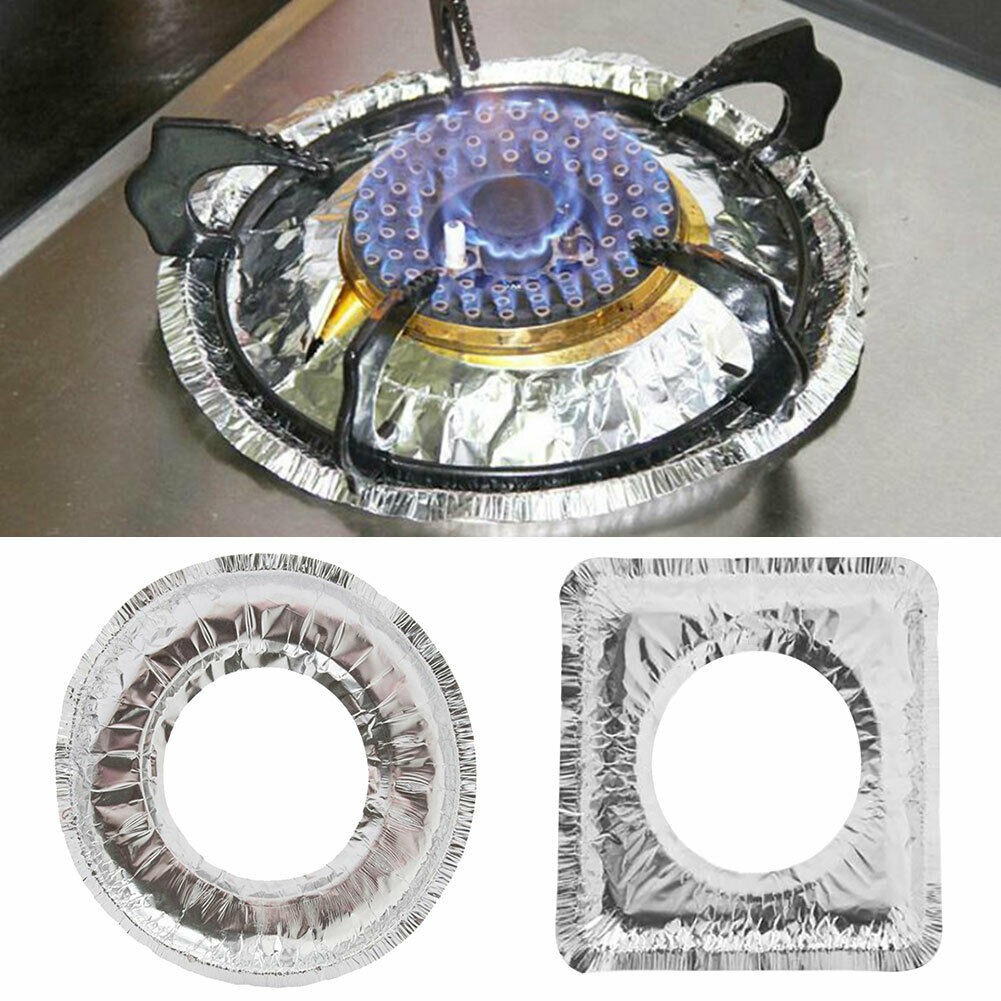 -Giấy bạc lót bếp ga được thiết kế với 2 kiểu hình dạng vuông và tròn, vừa vặn với tất cả các loại bếp.