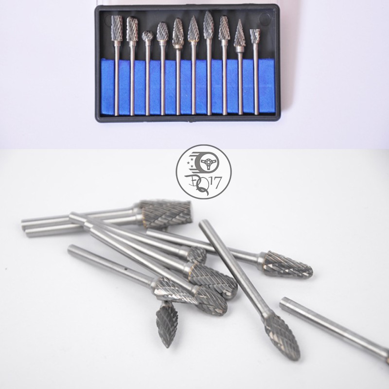 [ BỘ 10 MŨI MÀI KHẮC HỢP KIM CAO CẤP CÁN 3MM ] 100% như hình, thích hợp dùng để phay,cắt, tạo hình gỗ