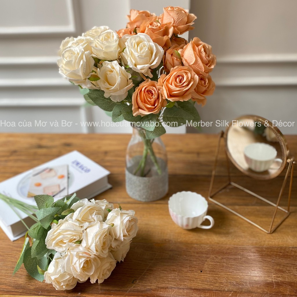 Nhà cửa & Đời sống > Trang trí nhà cửa > Hoa trang trí || Bó 12 Bông Hoa Hồng Lụa Giả Cao Cấp Merber (Mơ & Bơ) Nhiều Màu Loại 50cm - Cum Bông Khô Hoa Decor Trang Trí NhàCòn hàng