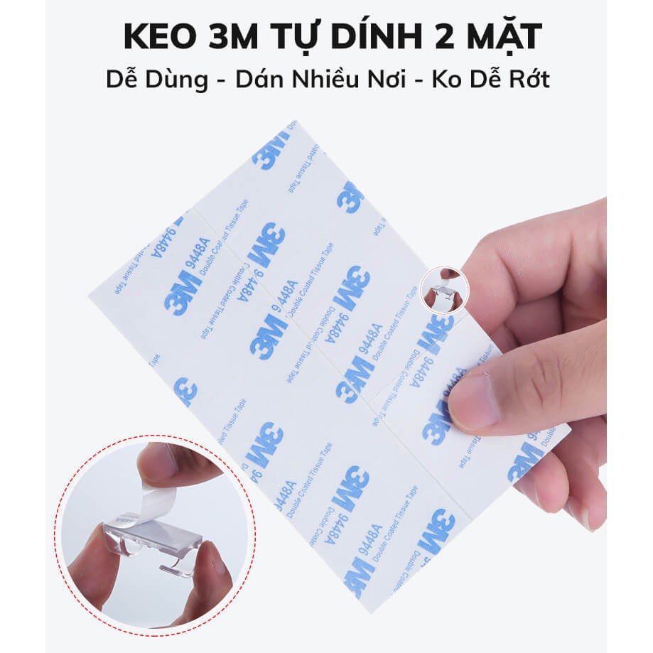 * Lưu ý: Sản phẩm sử dụng keo 2 mặt 3M có tác dụng nẹp cố định dây, ko có tác dụng treo. Với nhu cầu treo, hoặc cố định dây ở những vị trí gấp khúc quý khách có thể mua miếng dán 2 mặt siêu dính của shop để sử dụng