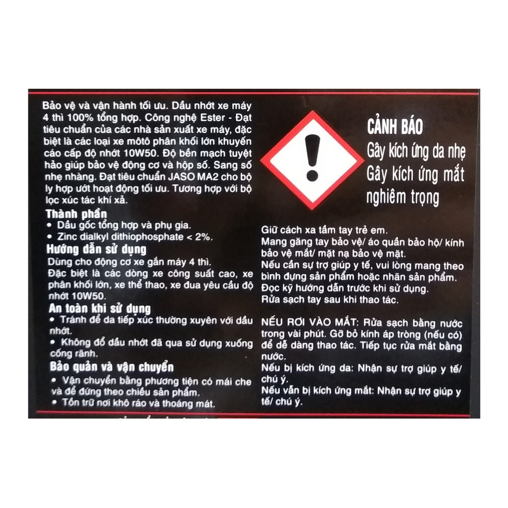 - Độ nhớt 10W50