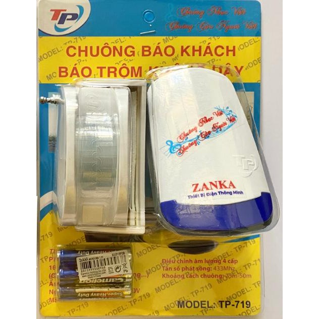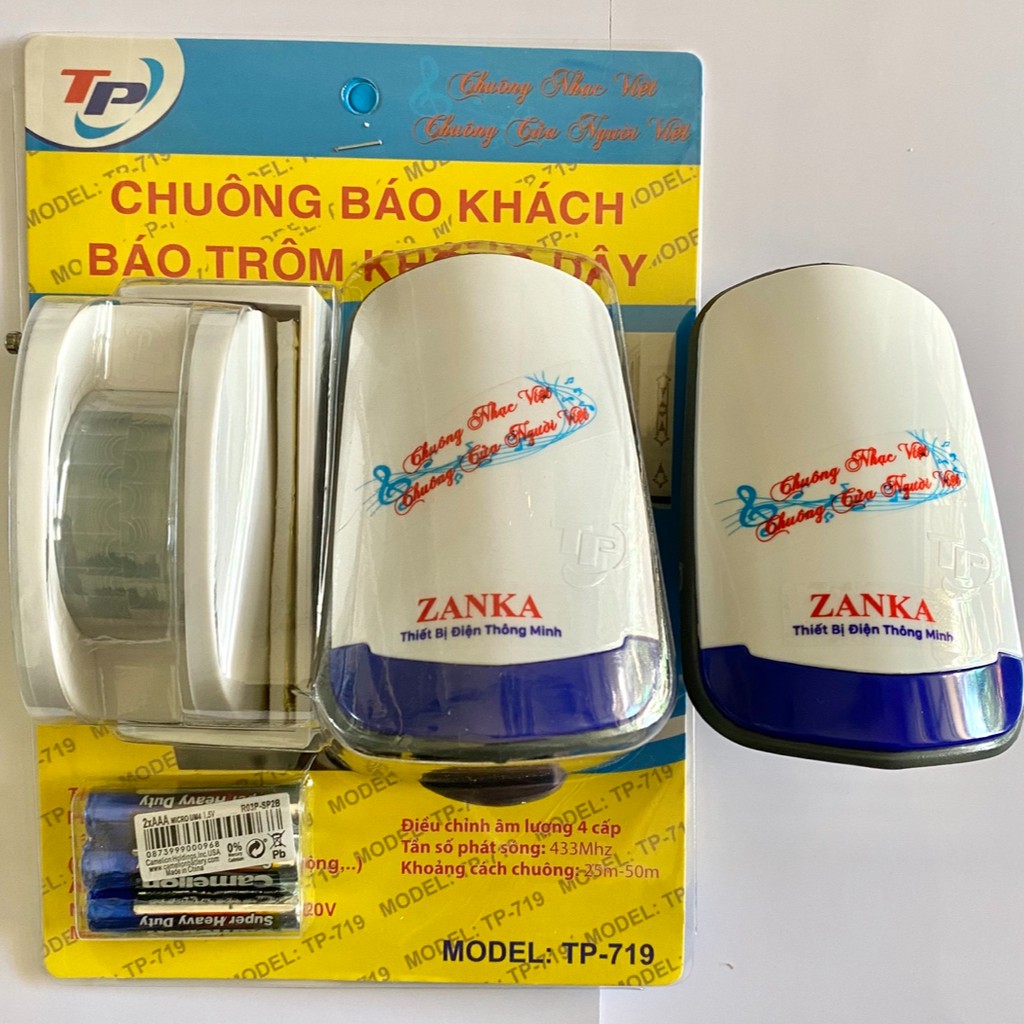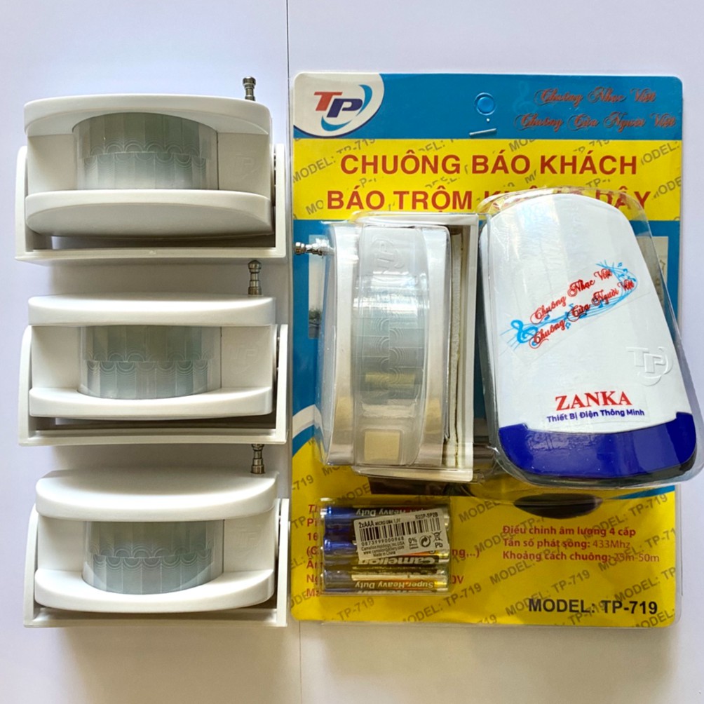 Giới thiệu Bộ 2 Chuông 1 Mắt báo khách [Trắng] TP-719-III kết hợp báo trộm cảm ứng hồng ngoại chuyển động [TẶNG KÈM PIN]