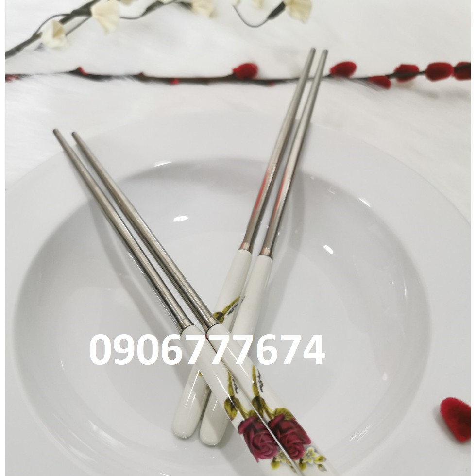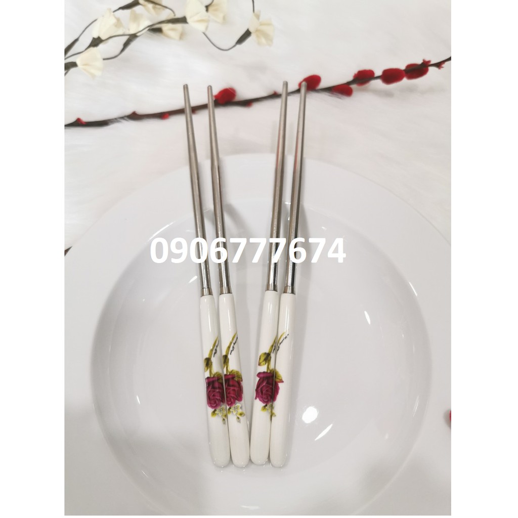 Cán đũa được làm bằng sứ cao cấp in họa tiết hoa hồng sang trọng.