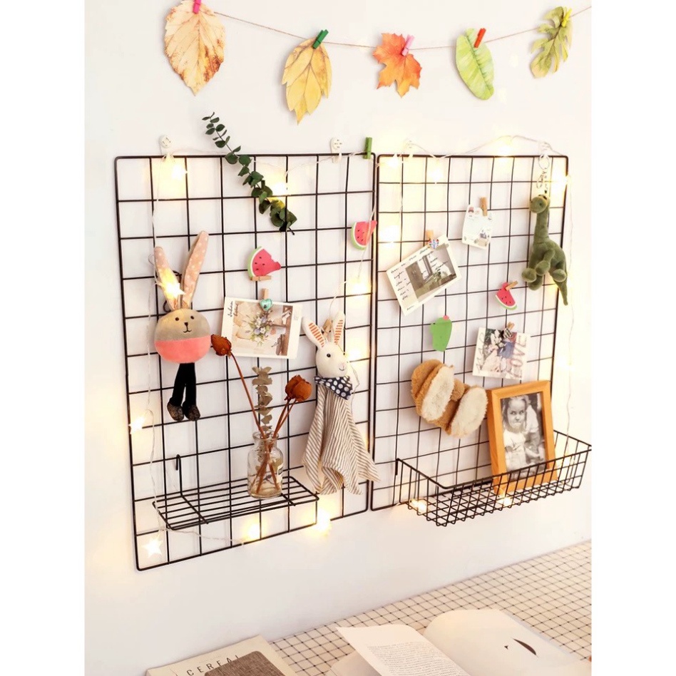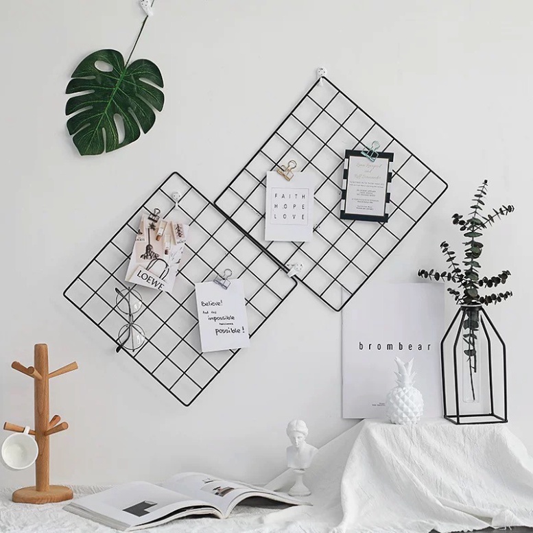 BỘ 2 KHUNG LƯỚI SẮT NGHỆ THUẬT 2 MÀU TRẮNG VÀ ĐEN TREO TƯỜNG VÀ BÀN LÀM VIỆC - KHUNG LƯỚI DECOR SIZE 35*45CM, 35*35CM