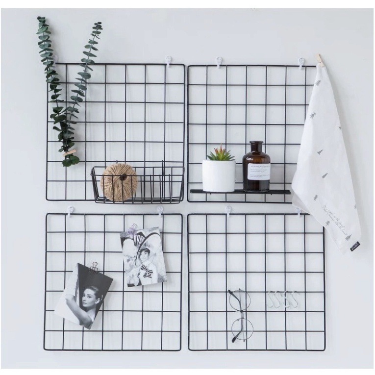 Giới thiệu BỘ 2 KHUNG LƯỚI SẮT NGHỆ THUẬT 2 MÀU TRẮNG VÀ ĐEN TREO TƯỜNG VÀ BÀN LÀM VIỆC - KHUNG LƯỚI DECOR SIZE 35*45CM, 35*35CM