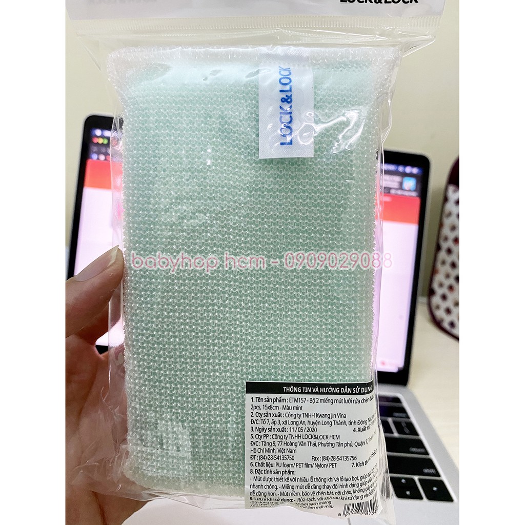 Nhà cửa & Đời sống > Dụng cụ chăm sóc nhà cửa > Miếng bọt biển, miếng chà vệ sinh || Bộ 2 miếng mút lưới rửa chén bát Lock&Lock ETM157 15x8cm - Màu MintCòn hàng