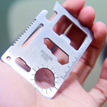 - Kích thước của tấm thép chỉ bằng chiếc thẻ tín dụng. Có thể được đặt trong một chiếc ví cầm tay hay treo trên một vòng chìa khóa. Rất thuận tiện để mang theo và sử dụng.