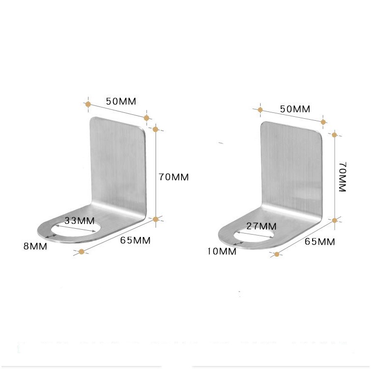 BỘ 2 MÓC TREO CỔ CHAI NƯỚC RỬA TAY, DẦU GỘI INOX 304 DÁN TƯỜNG- Bộ gồm 2 móc treo: 1 móc treo cho cổ chai 27mm và 1 móc treo cho cổ chai 33mm