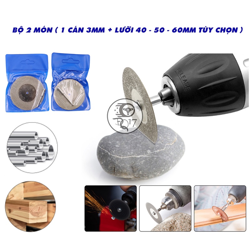 BỘ 2 MÓN 1 CÁN 3MM + LƯỠI CẮT MÀI ĐA NĂNG ĐƯỜNG KÍNH 40 50 60 MM TÙY CHỌN ,dùng để cắt inox, nhựa, thủy tinh, gỗ,..