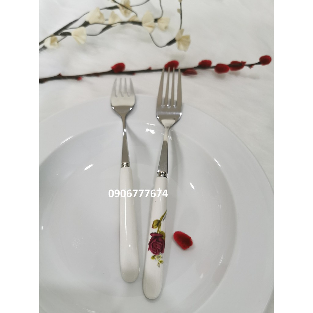 BỘ 2 NĨA ĂN INOX KẾT HỢP SỨ HÀN QUỐC (Hình shop tự chụp)Kích thước : 20cm