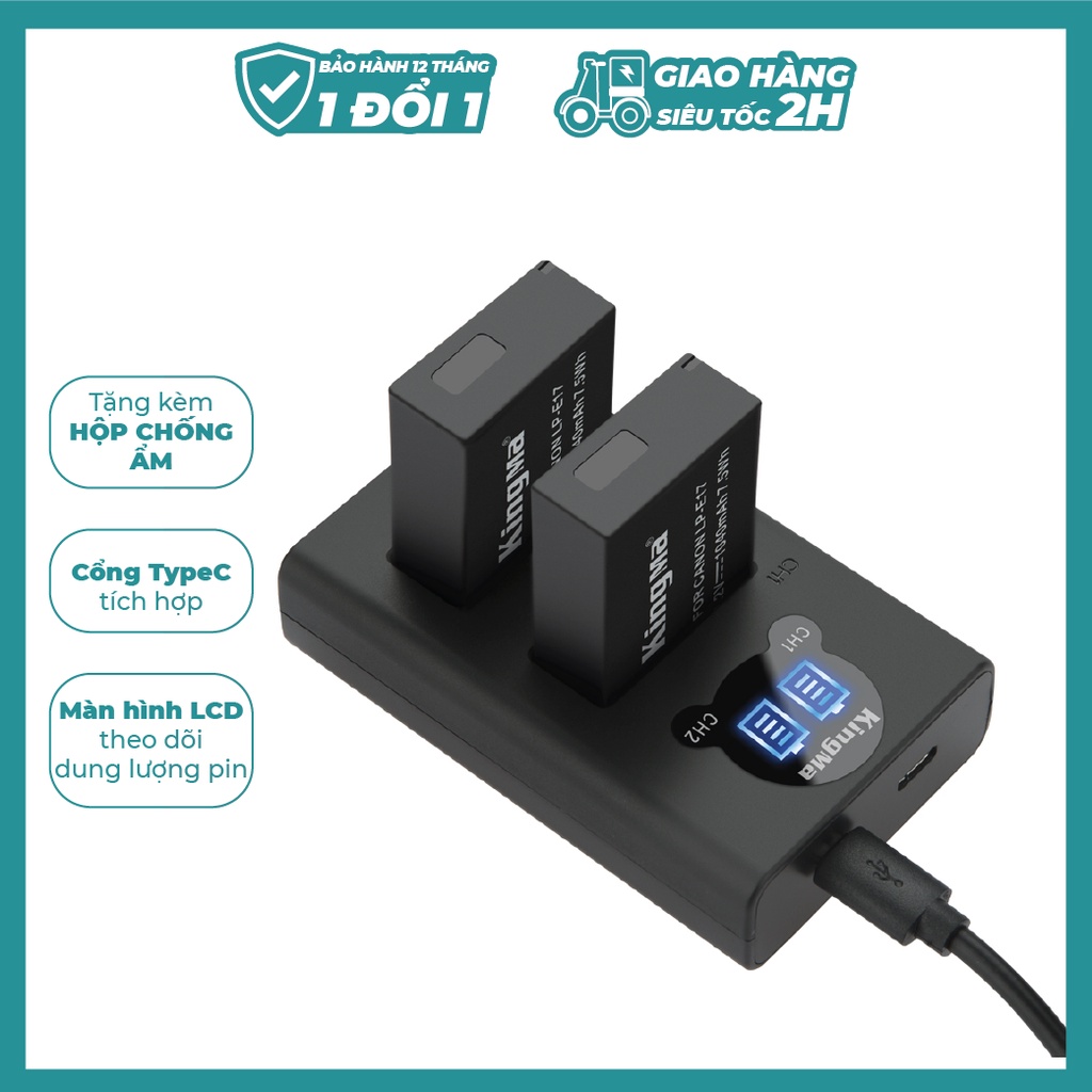 BỘ 2 PIN + DOCK SẠC ĐÔI KINGMA LP-E17 CANON ( THẾ HỆ 2)