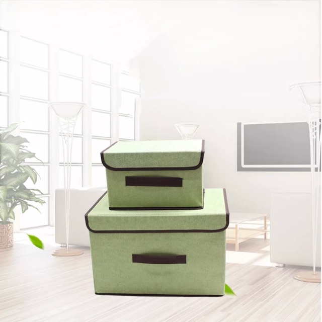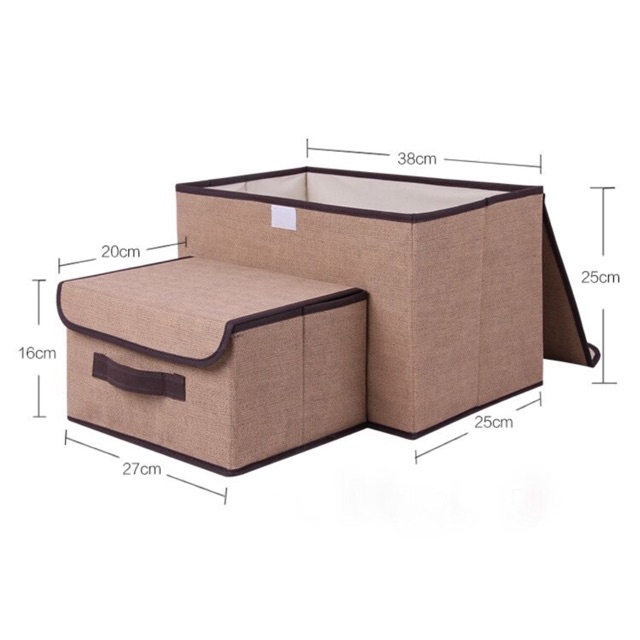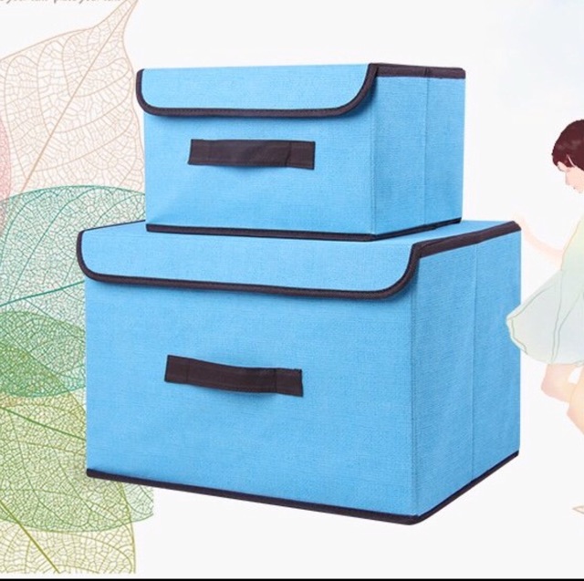 Bộ 2 Hộp Vải Đựng Đồ Khung Cứng Có Nắp Cao Cấp