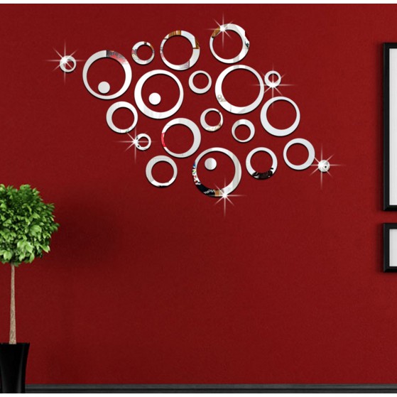 Bộ 23 gương dán tường mẫu vòng tròn. Gương sáng bóng, không vỡ, nhẹ dễ lắp đặt, không cần khoan treo.Gương có nhiều kích thước cho bạn thỏa sức sáng tạo cách trang trí riêng theo ý mình.