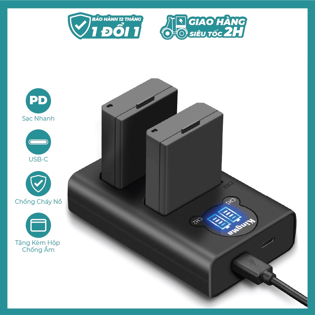 📸 Sạc đôi: KingMa Thế hệ 2 mỏng nhẹ màn hình LCD hiển thị thông số pin