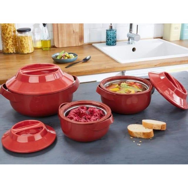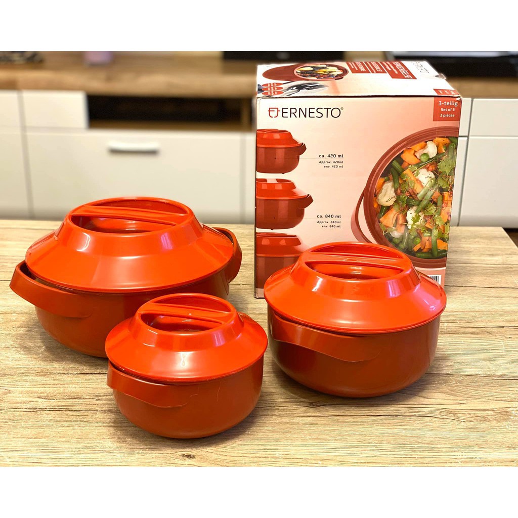 BỘ 3 BÁT GIỮ NHIỆT ERNESTO màu đỏ - luôn giữ cơm canh nóng hổi thơm ngon 🥰🍲🍲🍲Bộ bát giữ nhiệt Ernesto được thiết kế 2 ngăn với lớp chân không cách nhiệt giúp giữ đồ ăn lạnh hoặc ấm nóng trong 1 khoảng thời gian dài. Rất thích hợp để bày các món ăn và giữ ấm trên bàn ăn. Đặc biệt thích hợp cho chị em dân văn phòng mang đồ ăn như trái cây hay đồ ăn nấu sẵn đi làm. Với các mẹ bỉm sữa có thể dùng bát để đựng bột, cháo luôn được giữ ấm cho các bé ăn ngon miệng đến thìa cuối cùng.