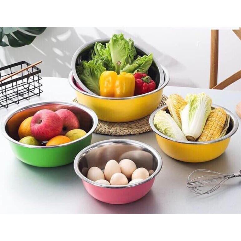Bộ thau Inox 3 Món Nhiều Màu Thiết Kế Tiện Dụng Cho Nhà Bếp- Bộ sản phẩm gồm 3 chiếc bát inox, bên ngoài sơn nhiều màu độc đáo.