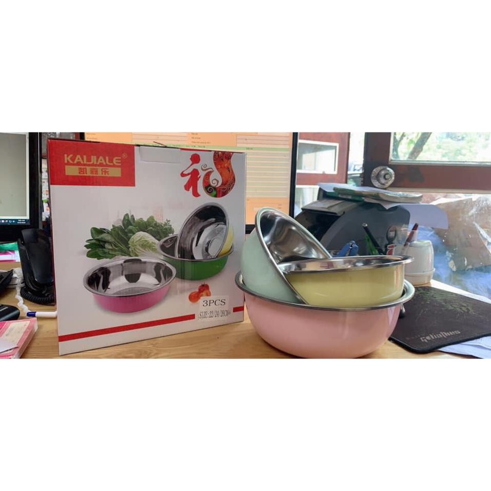 BỘ 3 BÁT INOX SIZE 22.24.26 NHIỀU MÀU TIỆN DỤNG